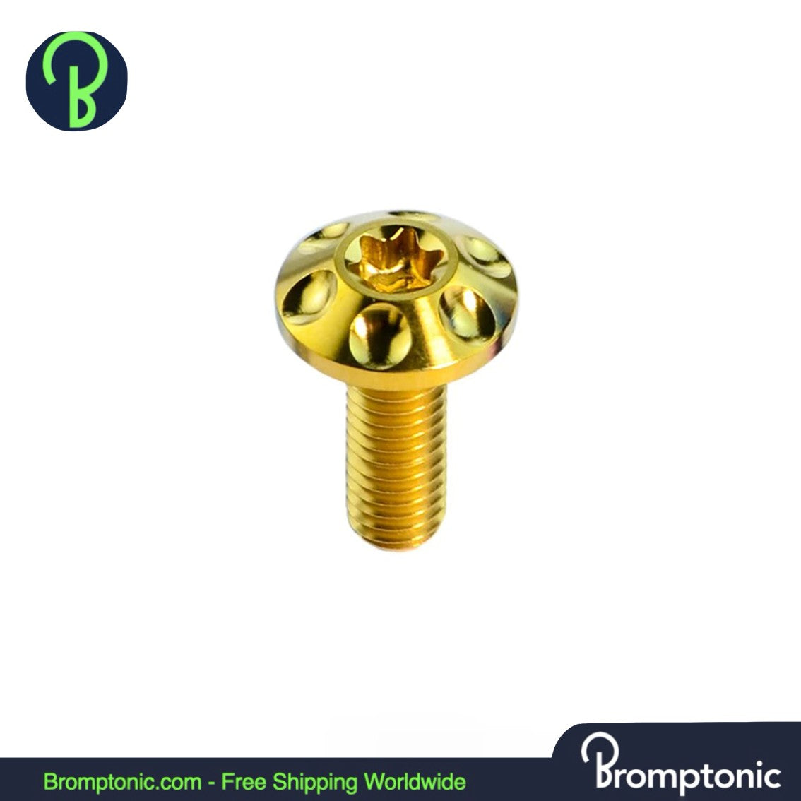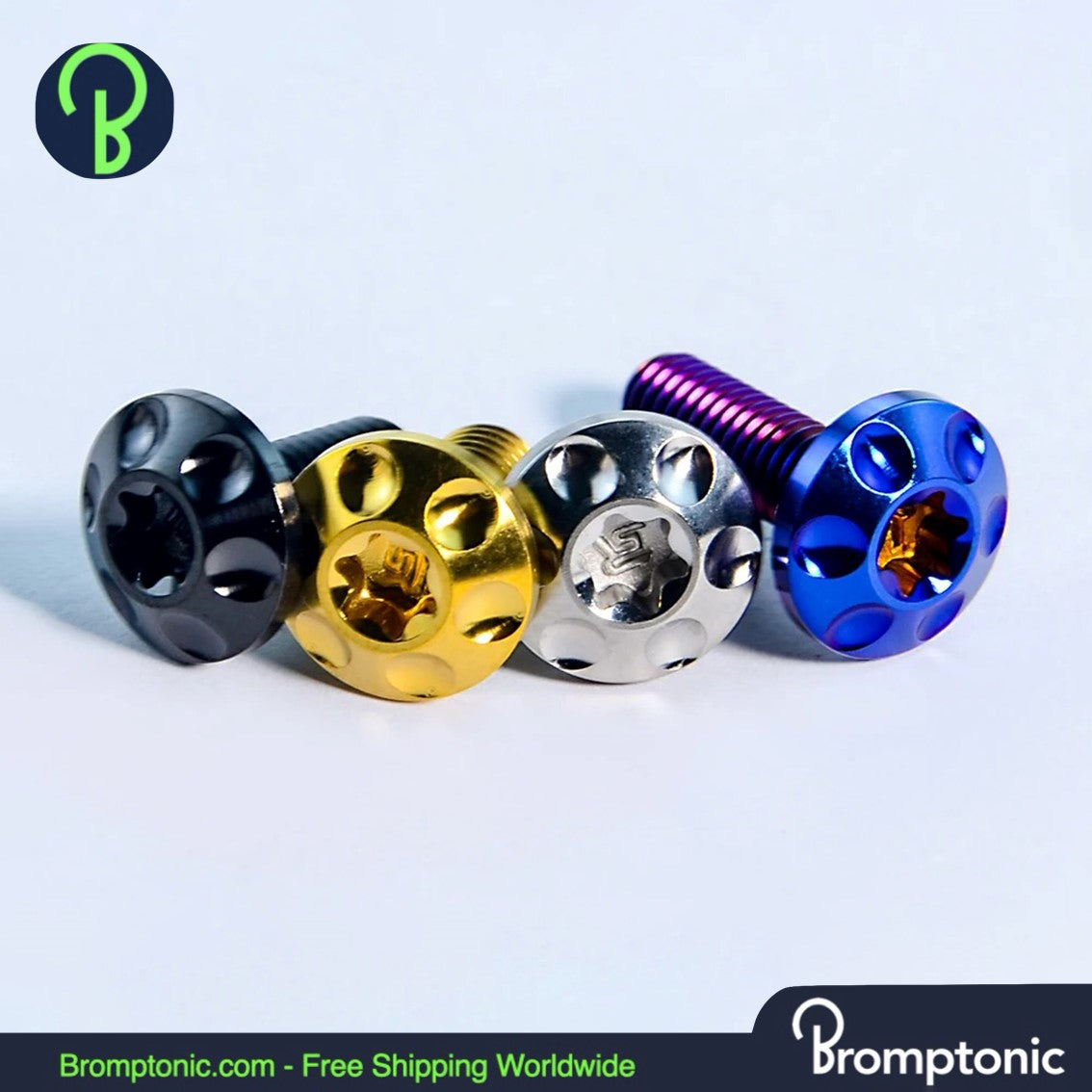 Le boulon en titane Bromptonic est la solution parfaite pour les propriétaires de Brompton qui préfèrent ne pas utiliser de porte-bagages avant. Conçu pour couvrir le trou du bloc du porte-bagages, ce boulon en titane de première qualité (TC4/GR5) offre une finition propre et polie tout en protégeant la zone exposée de la saleté et des débris.
