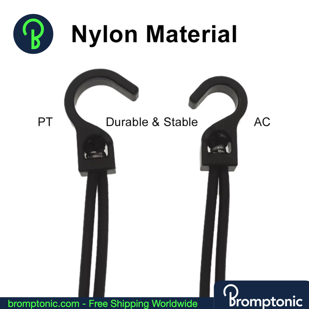 Assurez la sécurité de votre chargement et l'élégance de votre conduite grâce à ces sangles élastiques améliorées pour porte-bagages arrière, conçues spécialement pour les vélos Brompton.